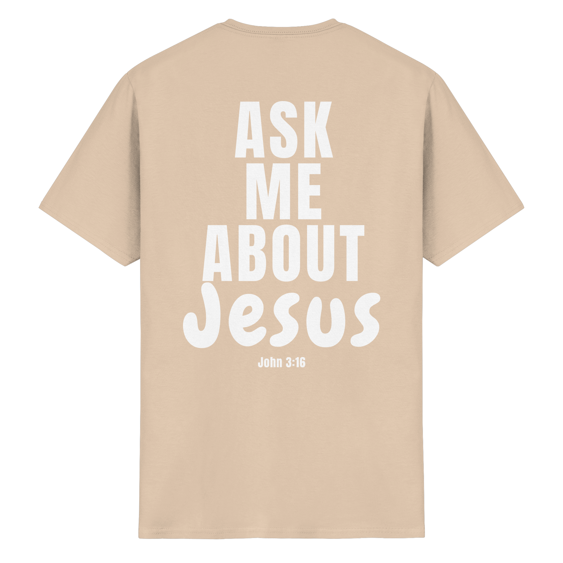 Embrace your beliefs and invite meaningful discussions with our "Ask Me About Jesus" T-Shirt. Designed with bold typography that stands out, this shirt is more than just apparel; it’s a statement.