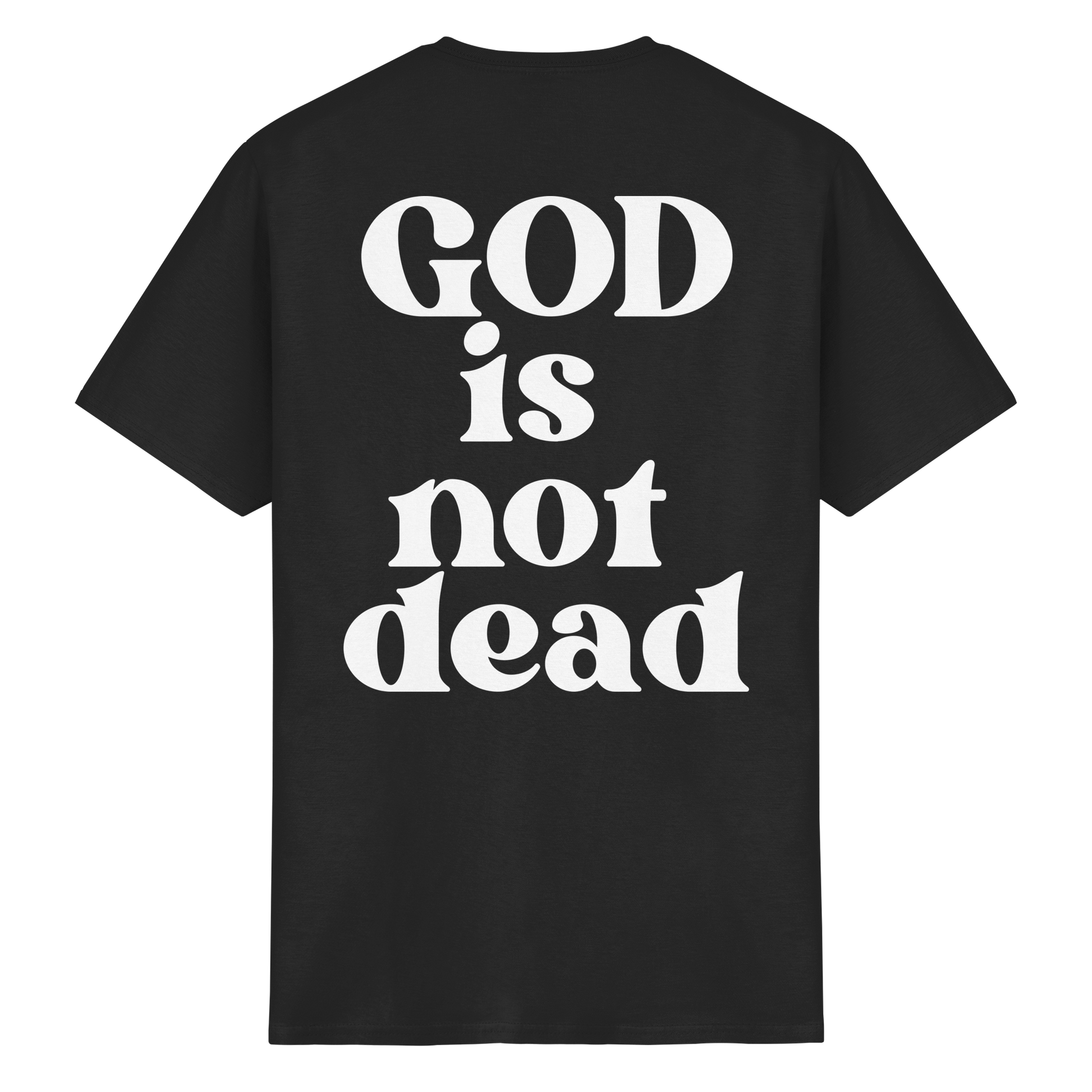 A nossa Camiseta Heavy Cotton é mais do que uma peça de roupa; é uma declaração de fé e estilo. Com o design ousado das palavras "God is not dead" em uma tipografia marcante, esta camiseta é perfeita para aqueles que querem expressar suas crenças com confiança.